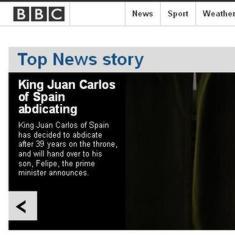 La prensa internacional se ha hecho eco rápidamente de la abdicación del Rey Juan Carlos, de 76 años, que ha decidido depositar la Corona en manos de su hijo Felipe, el Príncipe de Asturias. La histórica decisión del Monarca, anunciada esta mañana por el presidente del Gobierno, Mariano Rajoy, ha llegado a las portadas de las ediciones digitales de los principales medios de todo el planeta.