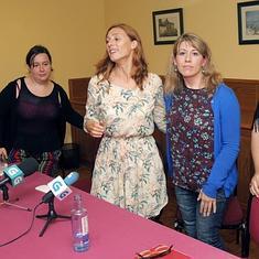Las integrantes de Podemos en Galicia Carmen Santos (2d) y Ana Pérez (2i).
