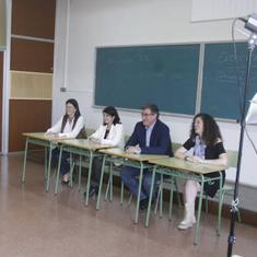 Susana López Ares, Adriana Lastra, Sofía Castañón e Ignacio Prendes acudieron a la cita con EL COMERCIO en el IES Fernández Vallín de Gijón, que cedió las instalaciones para recrear el regreso a las aulas de los políticos que, el día 26, deberán someterse a su particular examen de junio. Los cuatro candidatos al Congreso accedieron a subirse a la tarima cual alumnos aplicados para dejar constancia en la pizarra de sus mensajes de campaña, y lo hicieron tiza en mano, aunque algunos reconocieron que no la habían vuelto a utilizar desde su etapa escolar. Fue López Ares, por su condición de profesora del área de Economía en la Universidad de Oviedo, la que se mostró más cómoda escribiendo en el encerado. «Una pizarra de tiza, como a mí me gusta», exclamó nada más ver el escenario elegido.