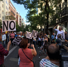 A uno de los trabajadores del partido, conductor de Elena Valenciano, lo persiguieron a la salida del partido al grito de "Traidores" y "Fascistas", además de "corrupto" y "golfo". Esta persona, acosada por los manifestantes, se dio la vuelta y comenzó a hablar con uno de ellos hasta que este se abalanzó sobre él en un forcejeo en el que nadie resultó herido por la intervención de otros trabajadores socialistas. Los agentes de la UIP que se encontraban a escasos metros de distancia del lugar, no intervinieron en el conato de pelea.