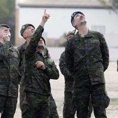Felipe VI observa el lanzamiento de los paracaidistas.