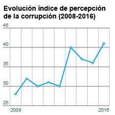 España ha repetido en 2016 su peor resultado histórico en el Índice de Percepción de la Corrupción (CPI) de la ONG Transparencia Internacional (TI) que ha sido publicado este miércoles, al lograr 58 puntos sobre un máximo de 100.