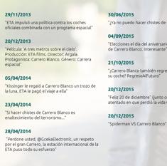 3. "Kissinger le regaló a Carrero Blanco un trozo de la luna, ETA le pagó el viaje a ella". Publicado el 5 de abril de 2014.