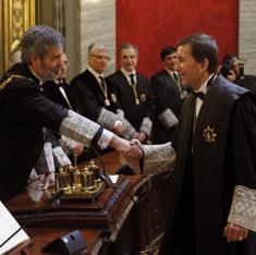 Manuel Moix saluda al presidente del Tribunal Supremo, Carlos Lesmes.