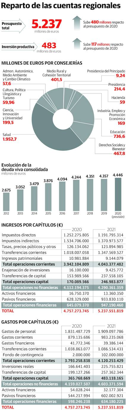 No hubo grandes sorpresas y, tal y como venía escrito en el guión desde hacía días, el proyecto presupuestario de 5.237 millones elaborado por ... el Gobierno del Principado para hacer frente a la crisis sanitaria y tratar de reactivar la economía a lo largo de 2021 salió adelante con amplia mayoría. El dictamen final de las cuentas contó con el voto favorable de cinco fuerzas políticas (PSOE, Ciudadanos, Podemos, IU y el diputado de Foro Adrián Pumares) lo que, numéricamente, supone 32 votos a favor de los 45 diputados de la Cámara. Un 70% de apoyo nunca antes visto en este hemiciclo en un debate presupuestario. «Hoy, apoyar estos presupuestos -en un momento vital y transcendental para Asturias- es querer nuestra tierra y comprometerse con ella. Una buena noticia para cerrar este maldito año», dejó escrito el presidente del Principado, Adrián Barbón, en sus redes sociales al término del pleno.