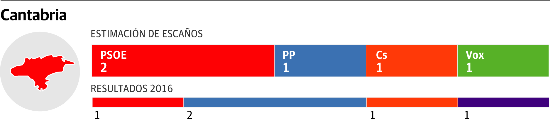 Los socialistas ganarían las elecciones en Cantabria por primera vez desde 1993 y el PP sufriría un fuerte retroceso. Pasaría de obtener el 41% de los votos al 25%. Buena parte del apoyo perdido iría a parar a Vox, que lograría el 13% de los sufragios. La encuesta augura un mal resultado a Podemos, que perdería su escaño, y al PRC de Revilla, que tampoco obtendría representación.