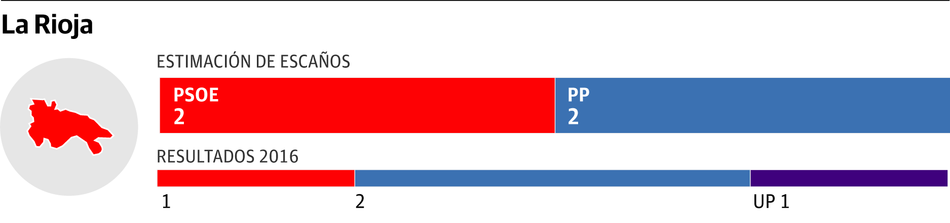 El PSOE rentabilizaría el mandato de Pedro Sánchez y ganaría las elecciones gracias al desplome del PP, que mantendría sus dos representantes en el Congreso pero pierde el 13% de sus apoyos y cae del 42% de 2016 al 29%. Los socialistas lograrían dos escaños al alcanzar el 31% de los votos. El bipartidismo resurge en La Rioja ya que Podemos, tercero en discordia, perdería su escaño.