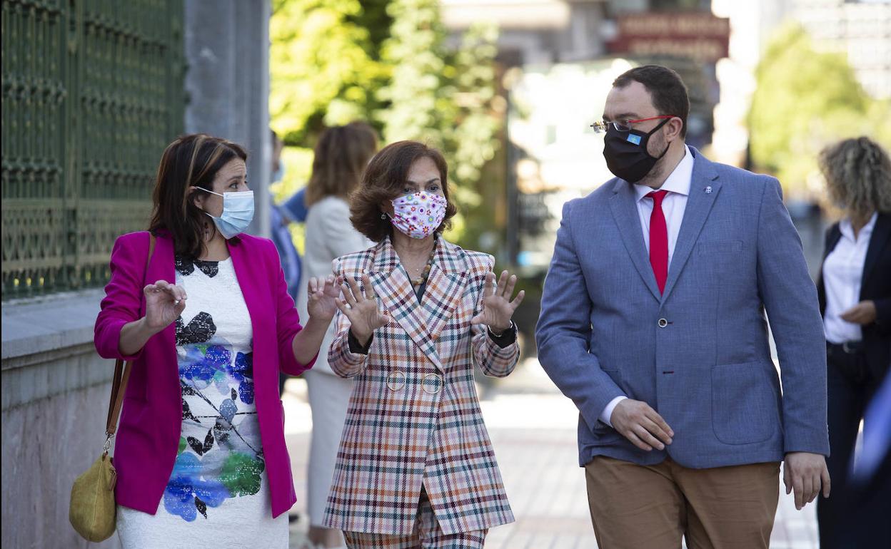 Carmen Calvo, quien negoció en nombre del Gobierno con la Casa Real el contenido de la carta en la que don JuanCarlos anunciaba su decisión de abandonar España, efectuó estas declaraciones ayer en Oviedo, minutos antes de reunirse con el presidente del Principado, Adrián Barbón. Con el jefe del Ejecutivo asturiano, la vicepresidenta primera del Gobierno visitó posteriormente la exposición de Orlando Pelayo, del Museo deBellas Artes, y participó en Tuña en un homenaje al general Rafael delRiego, nacido en esta localidad tinetense en 1784 y quien el 1 de enero de 1820 lideró el alzamiento liberal contra el monarca absolutista Fernando VII.