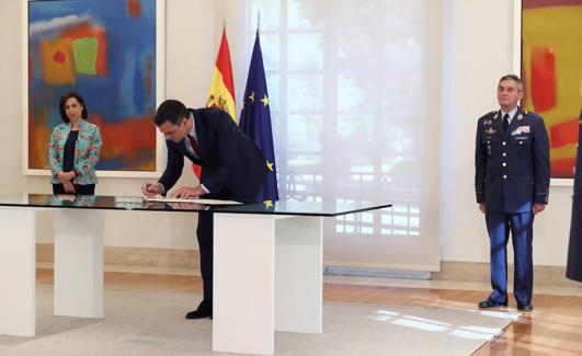 La Directiva de Defensa Nacional se ha comprometido a dotar al Ministerio de Defensa con la financiación que sea necesaria para sostener todos sus compromisos tanto nacionales como internacionales, favorecer la industria nacional de Defensa y también la integración en proyectos europeos, reforzar las capacidades del Centro Nacional de Inteligencia (CNI) en un contexto en el que apuesta por una OTAN «sólida», combinar la disuasión y el diálogo en conflictos internacionales y reforzar el papel de la mujer, tanto en el Ejército como en las comunidades de otros países donde haya despliegue de tropas. Estas son algunas de las directrices que se han incluido en la Directiva de Defensa Nacional que firmó este jueves el presidente del Gobierno, Pedro Sánchez, en Moncloa, con la presencia de la ministra de Defensa Margarita Robles, la cúpula del Ministerio de Defensa y los jefes de los Ejércitos.