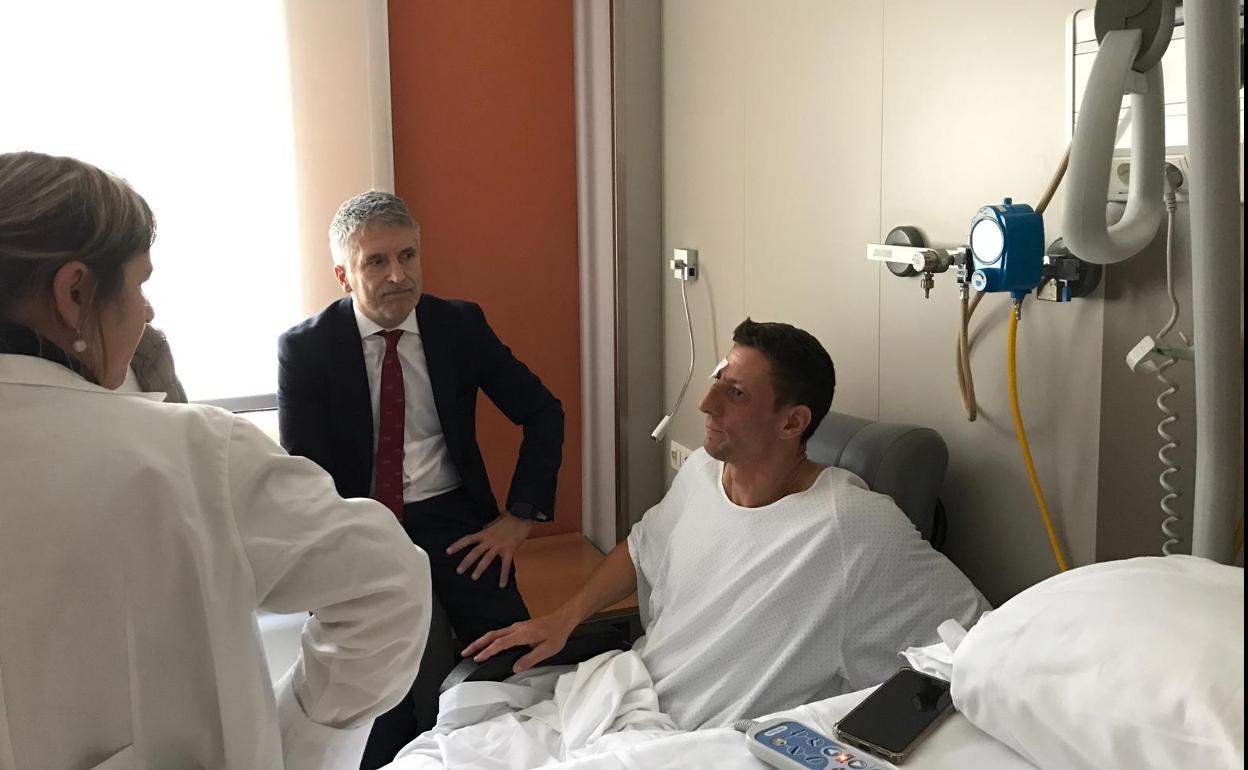 Marlaska charla con uno de los agentes heridos. Ministerio del Interior