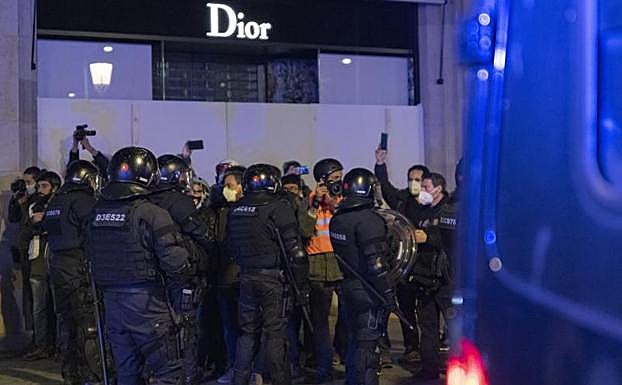 Imagen secundaria 1 - Imágenes de los disturbios en Barcelona.