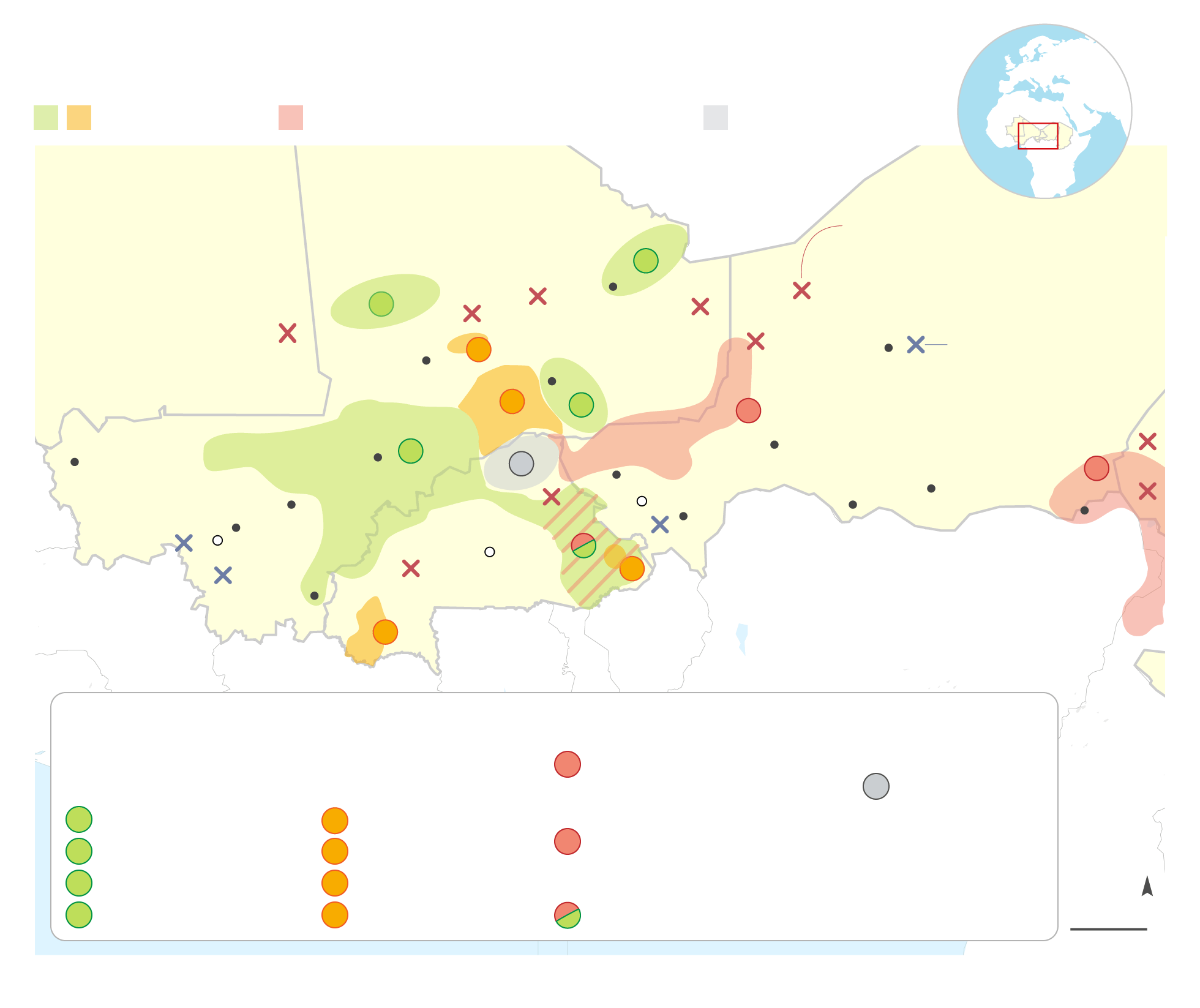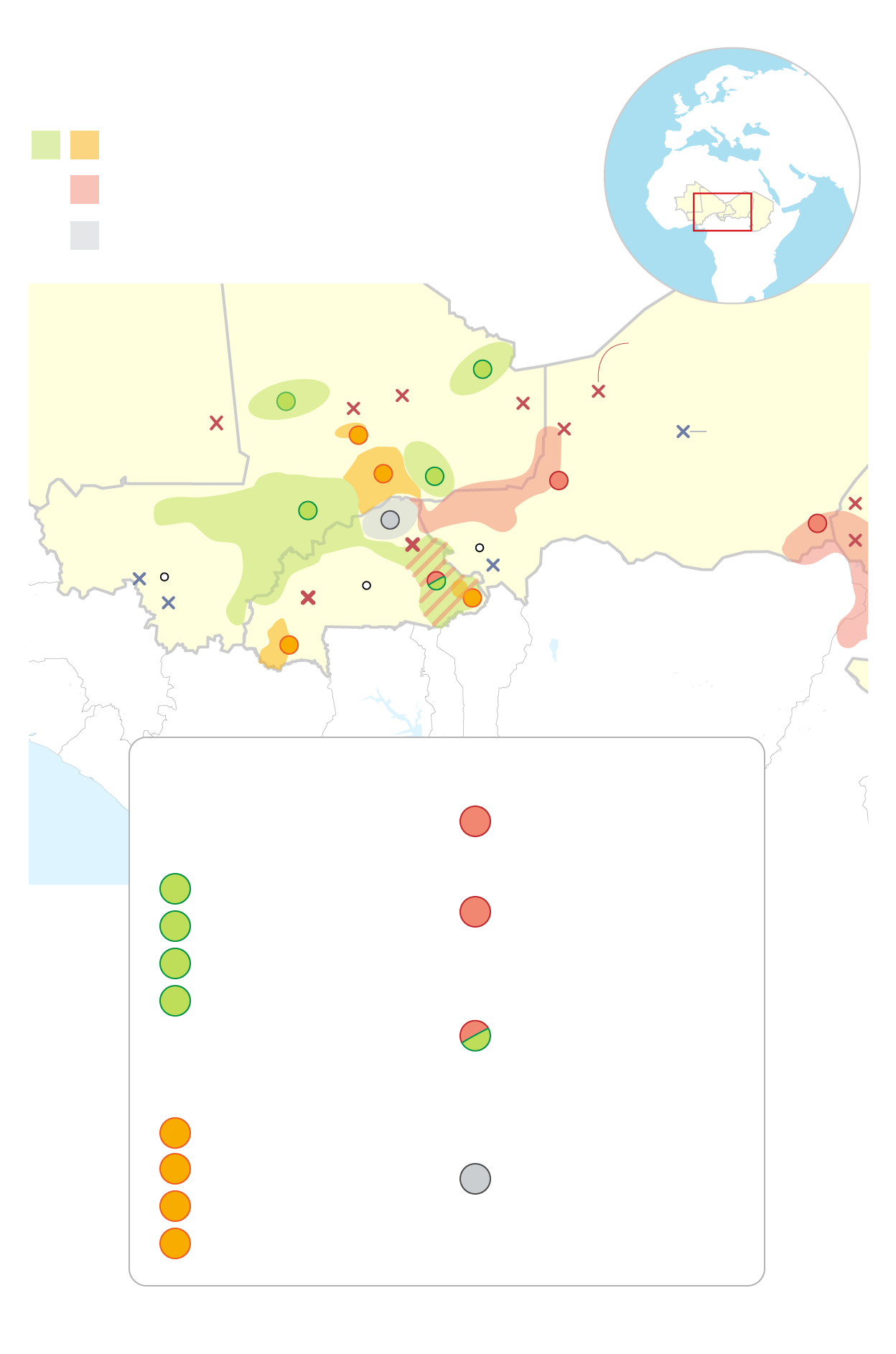 Áreas aproximadas de influencia de grupos yihadistas en el Sahel