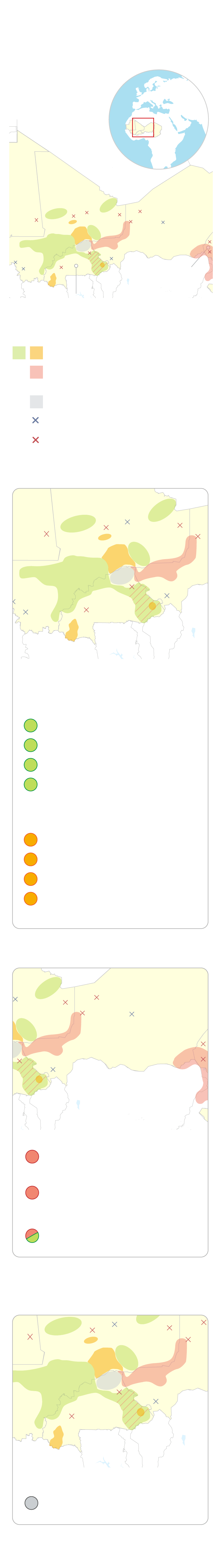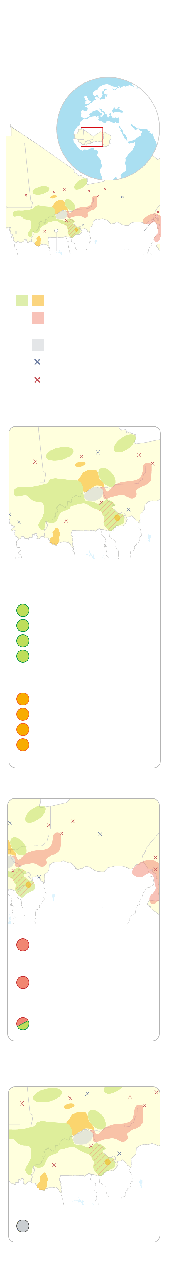 Según los últimos documentos del DSN, los 12 grupos yihadistas que preocupan a los servicios antiterroristas españoles particularmente se asientan en Mali, donde se ubican seis organizaciones terroristas en la mitad sur del país; Burkina Faso, con otros cuatro grupos yihadistas armados; y Níger, con un par de facciones que operan en las fronteras de Chad y de Mali.