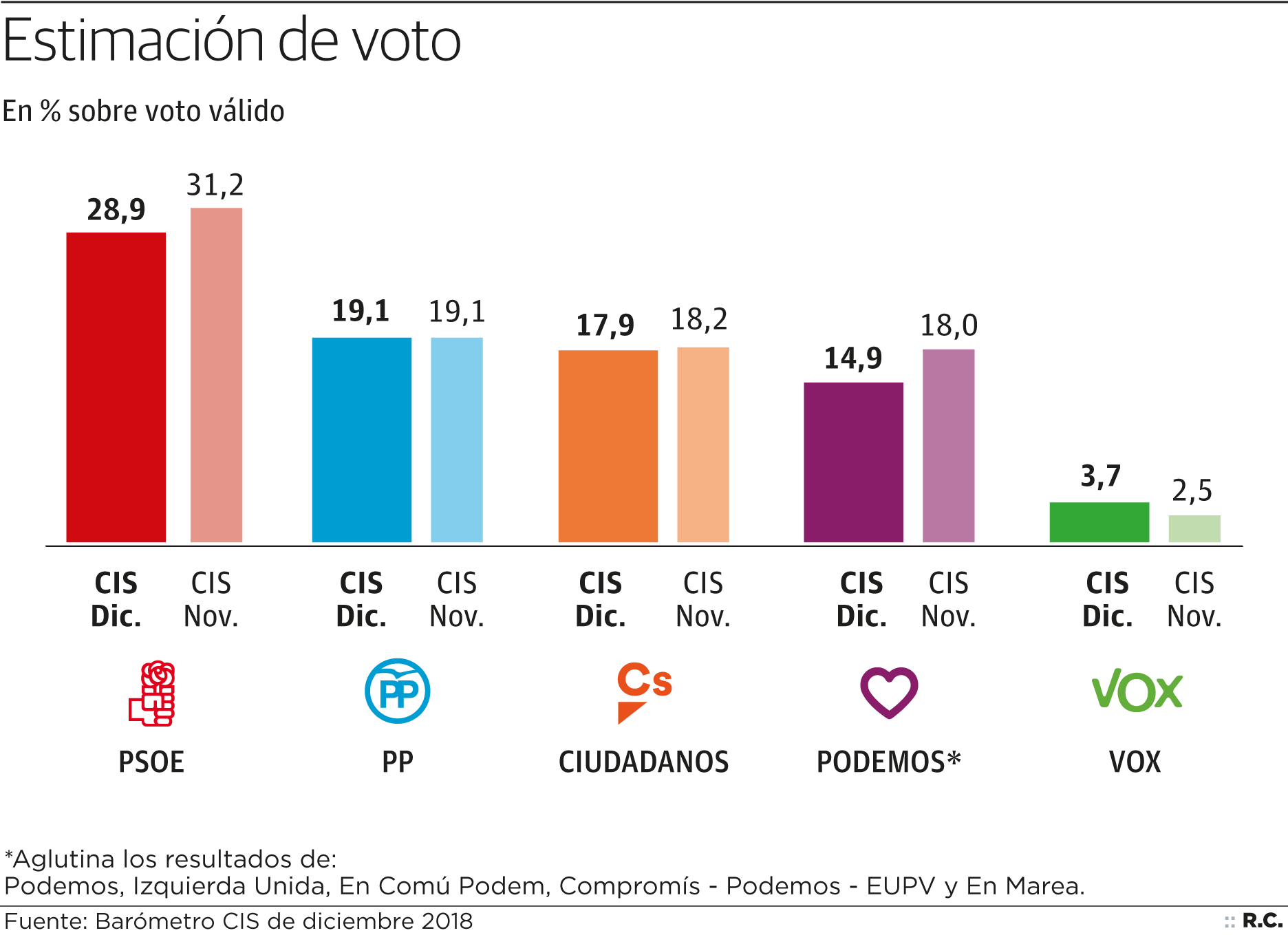 El PSOE cosecharía una contundente victoria en Asturias si se convocaran unas elecciones generales, en un escenario marcado por una fuerte abstención y con el Partido Popular relegado a la cuarta posición, superado tanto por Unidos Podemos como por Ciudadanos, en situación de empate. Es la radiografía que dibuja el barómetro del Centro de Investigaciones Sociológicas (CIS) correspondiente al mes de diciembre, que recoge una muy tímida presencia de Vox, pese a su pujanza en los recientes comicios en Andalucía.