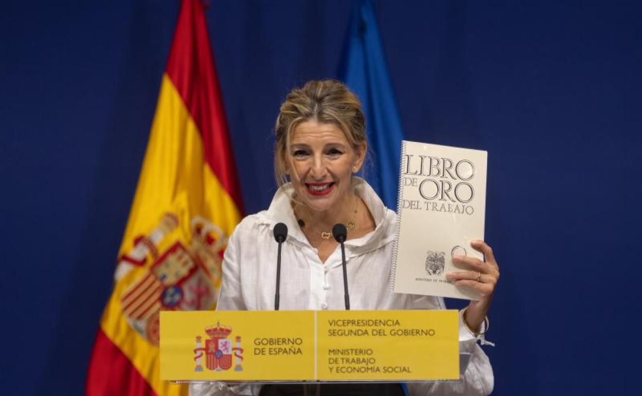 La vicepresidenta Yolanda Díaz anuncia la retirada de la Medalla del Trabajo a Franco. EP / ATLAS