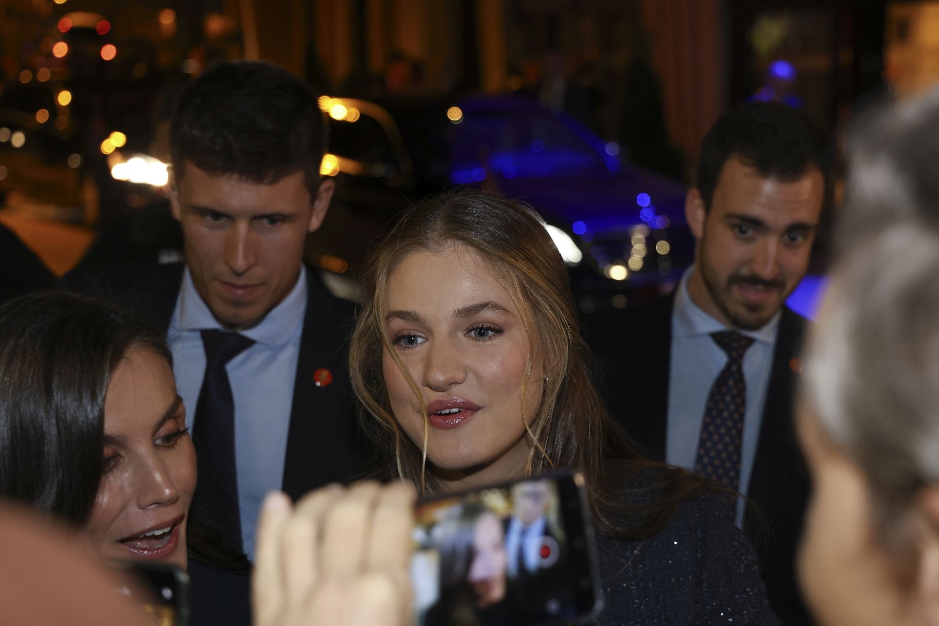 Si la 'pasarela' improvisada en que se convirtió el Auditorio Príncipe Felipe brilló por variedad y potencia de color, la Familia Real apostó por lo contrario y fue sobria y en perfecta armonía, combinando exclusivamente azul marino y negro.