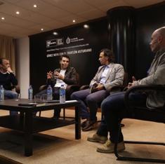 Gómez Noya repasó, en una distendida tertulia, los momentos más destacados de su trayectoria deportiva. Desde sus inicios, solo como nadador, hasta los intensos duelos en la élite disputados contra los hermanos Brownlee. Esta rivalidad con los británicos fue, precisamente, lo que le ayudó a mejorar como triatleta. «Es algo que ocurre en muchos deportes. Puedes dominar durante un tiempo, pero de pronto aparece un rival mucho más rápido, que te gana, y entonces empiezas a buscar la manera de mejorar», señala Gómez Noya. «Eso me obligó a tener que aplicarme», añade. No obstante, su tesón es el que le ha llevado a proclamarse cinco veces campeón del mundo de triatlón, cuatro veces campeón de Europa y haber logrado una medalla de plata en los Juegos Olímpicos de Londres 2012.