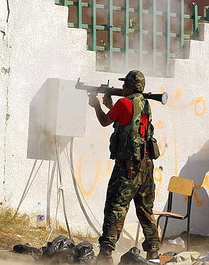 Las imágenes proporcionadas por las televisiones árabes muestran, por su parte, grupos de milicianos que se pasean por el interior de la fortaleza, donde al parecer no se escondía ni el líder libio ni sus hijos. Los rebeldes buscan ahora, entre escombros y columnas de humo negro, leales del régimen a los que desarmar y símbolos del dictador que arrasar. De acuerdo con el relato de la cadena de televisión catarí Al Yazira, pese a que soldados han opuesto gran resistencia, e incluso han logrado en un primer momento repeler el primer gran asalto contra una de las puertas de la enorme residencia, han entregado finalmente las armas a los rebeldes sin mayor resistencia.