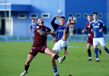 El Avilés se estiró en busca del empate con una jugada de Morilla por la izquierda, aunque el equipo visitante tuvo casi de inmediato una clara ocasión en un disparo desde dentro del área que detuvo con mucho mérito Pelayo. El portero juvenil fue el más destacado de la primera mitad, ya que casi al borde del descanso desbarataría varias ocasiones, una de ellas doble en el área pequeña de Diego Aznar y Leandro, que también lanzaría un balón al palo en los minutos de mayor agobio defensivo del Avilés, en especial por la banda derecha.