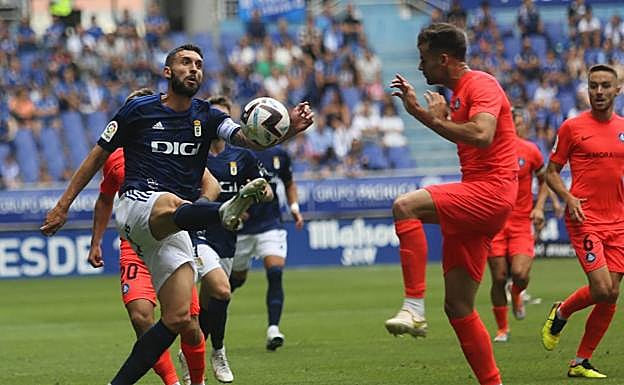 Las escasas veces que los visitantes eran capaces de burlar la presión de los ovetenses llegaban combinando casi hasta el borde del área, pero ahí se acababan perdiendo en la atinada zaga ovetense.