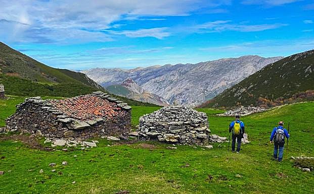 Cuando el bosque concluya, llegaremos a un lugar abierto de pasto, a los pies del Pico Ferreirua y sobre la larga floresta: es la braña de las Cadenas, todo un tesoro de la etnografía asturiana que alberga cabañas y corros muy bien conservados.