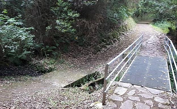 Después la senda nos llevará a atravesar un pequeño puente y después de él seguiremos por el camino marcado rodeado por bosques de eucaliptos y castaños, hasta llegar al Mirador de la Atalaya.