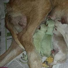 Desde la clínica veterinaria confirmaron el curioso nacimiento y explicaron que una enfermedad "vírica o bacteriana" pudo haber provocado su tono de piel. El origen podría ser la biliverdina, un pigmento que suele ser de color verde o azul y se puede encontrar en la cáscara de los huevos, en la sangre de muchos peces y, entre otros, en la placenta de los perros.