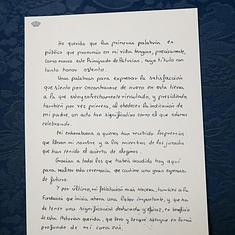 "He querido que las primeras palabras en público que pronuncio en mi vida tengan, precisamente, como marco, este Principado de Asturias...", comienza el texto, escrito en un papel con la corona de la Casa Real como membrete.