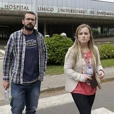 Los padres de Andrea, frente al Hospital Clínico de Santiago.