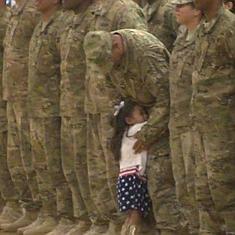 Un niña de 3 años interrumpe una ceremonia militar para abrazar a su padre
