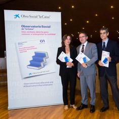 'La Caixa' ha presentado 'La educación como ascensor social, el primer dosier de su nuevo proyecto, el Observatorio Social, de la mano del director general de la Fundación Bancaria de 'la Caixa' junto a Miguel Requena (catedrático de Sociología de la UNED) y Anna Villarroya (profesora de economía aplicada de la Universidad de Barcelona).