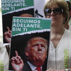 Activistas de Greenpeace se manifiestan en Madrid contra la decisión de Trump.
