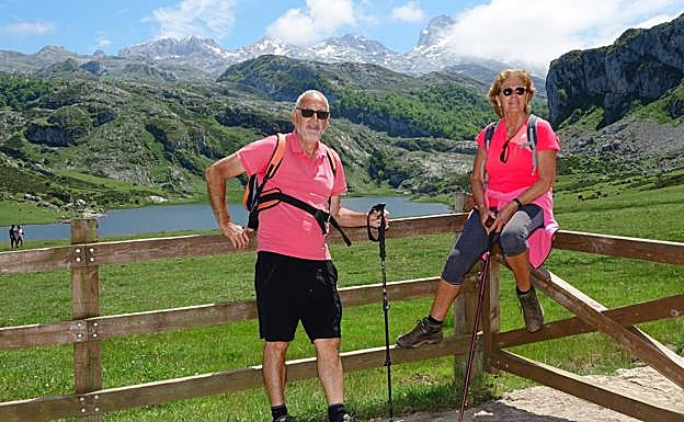 Había sed de montaña y, aunque los lunes no suelen ser los días más propicios para las escapadas, ayer fueron muchos los aficionados que se calzaron las botas y se lanzaron a disfrutar de su pasión en otros concejos gracias al cambio de fase. Fue el caso de los parragueses Carmen Martínez y Fernando Cuenco, quienes aprovecharon el buen tiempo para realizar una ruta circular con salida y llegada en el lago Ercina. «Teníamos unas ganas locas de volver a los Picos de Europa, pues los frecuentamos mucho, pero estas semanas pasadas no estaba muy claro si podíamos venir o no, así que hoy -por ayer-, con la nueva fase, no lo pensamos ni un momento», explicaron mientras descansaban de la caminata y disfrutaban de la tranquila estampa que ofrecían los Lagos de Covadonga.