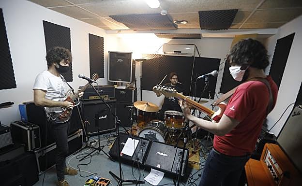 «El confinamiento ha sido muy duro para los músicos», explicaba uno de los componentes de la formación, Adrián Cadaya. «No se puede tocar como uno quiere y, la verdad, tampoco me gustaba eso de sumarme a actuaciones en 'streaming' desde mi casa, pero son muy respetables», añadía Pablo Álvarez Torre. Ellos dos, con la guitarra y el bajo en las manos, confesaban que al menos pudieron ensayar algo durante el encierro, con los auriculares o en acústico. «Yo no pude hacer nada de nada», decía a continuación Pablo González. Él es el batería. «Como para practicar en mi piso», bromeaba.