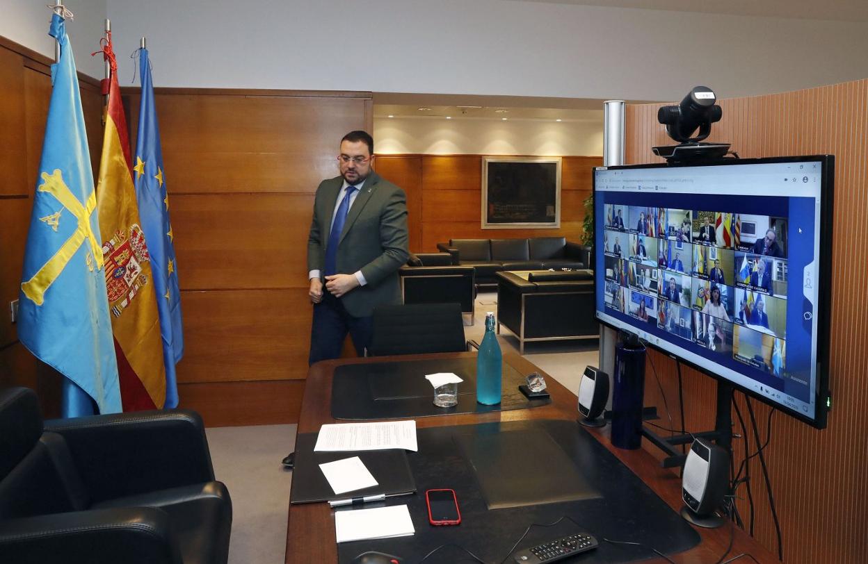 El presidente asturiano también se refirió en sus declaraciones públicas tras la videoconferencia a los pactos de reconstrucción social y económica del país, denominados Pactos de la Moncloa, y aseguró que el Principado se está tomando esta cuestión «muy en serio». Comentó en este sentido que ha pedido al conjunto de fuerzas políticas, pero también a agentes sociales y otros colectivos como la Universidad que realicen sus propuestas para recoger «el sentir comunitario» de la región. Y reiteró su petición a las fuerzas políticas de la oposición que están siendo más críticas que dejen los discursos «partidistas» para otro momento».