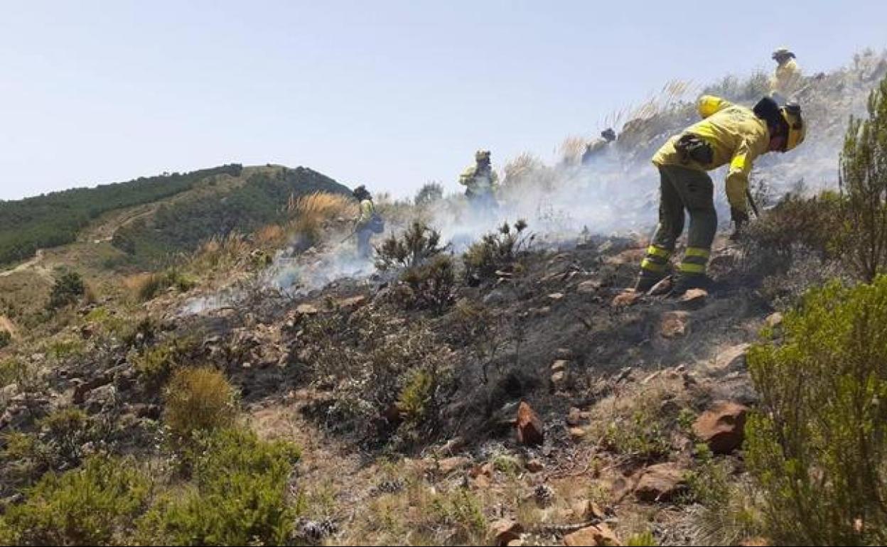 Más de un centenar de efectivos del Plan Infoca siguen trabajando este domingo en la zona para dar por controlado el fuego