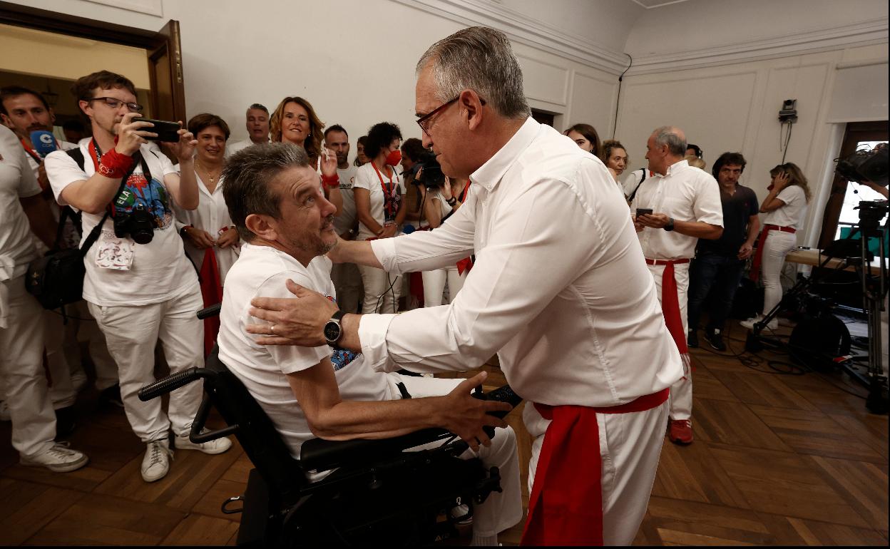 Un emocionado Juan Carlos Unzué descorcha los Sanfermines y da visibilidad a la ELA en la fiesta más universal