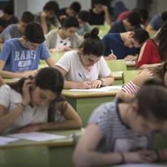 Varios estudiantes, en pruebas de acceso a la universidad en Valencia.