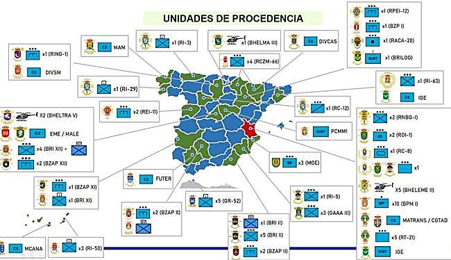 Para dar soporte a las operaciones de limpieza, rescate y recuperación, el Ejército de Tierra ha dispuesto un significativo número de medios logísticos y humanos. Entre los recursos, destacan 38 esfuerzos de entidad Sección, seis esfuerzos de entidad Subgrupo Táctico y tres de Grupo Táctico.
