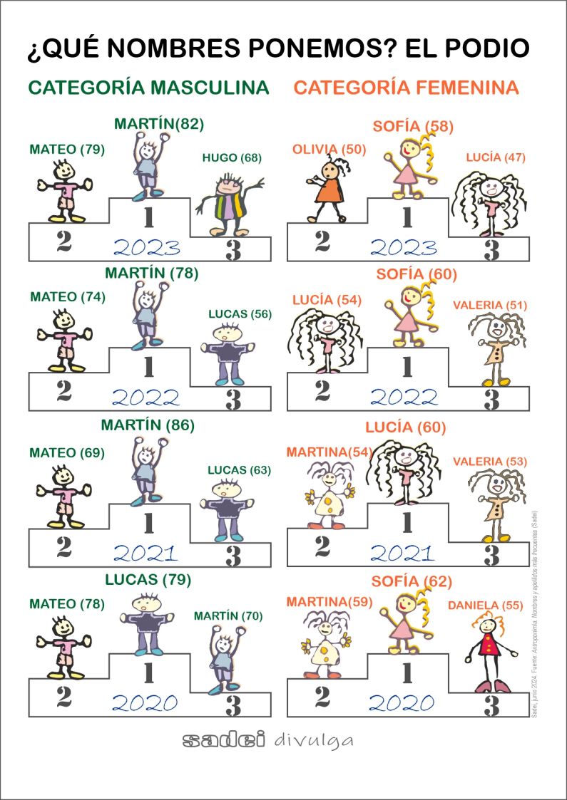 Martín, Mateo y Hugo en hombres; Sofía, Olivia y Lucía en niñas. La Sociedad Asturiana de Estudios Económicos e Industriales (SADEI) ha actualizado los nombres más comunes en Asturias, a partir de los registros del padrón de habitantes a 1 de enero de 2024. A partir de las estadísticas del Movimiento Natural de la Población se han incorporado los nombres de moda entre los nacidos en 2022 y 2023. Según década de nacimiento y los apellidos, primero y segundo, según concejo de nacimiento o residencia, estas son algunas de las curiosidades que arroja la estadística.