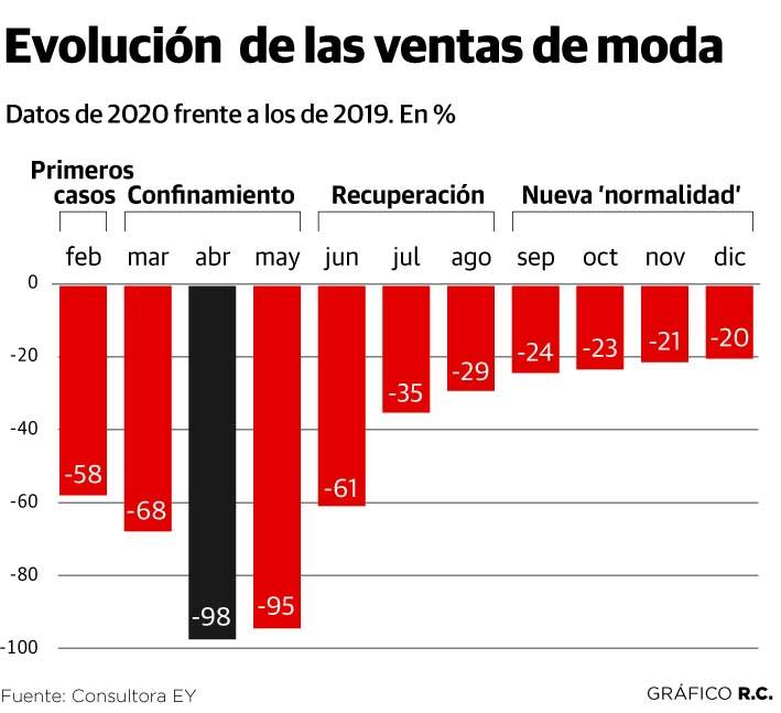 El volumen de ingresos del sector en 2019 fue un 20% inferior al de 2007, a pesar de que se vende la misma cantidad de ropa, por la «política de rebaja de precios» que se llevó a cabo tras la crisis financiera, explica Vello, quien lamenta que tener ahora las tiendas cerradas al menos dos meses «tendrá un gran impacto en su liquidez».