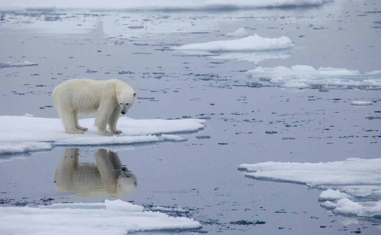 Un oso polar sobre un trozo de hielo en descomposición. afp / Atlas