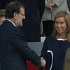 Rajoy saluda a la ministra Sanidad en el desfile de las Fuerzas Armadas.