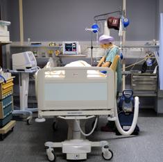 Una enfermera cuida de un paciente en una sala de recuperación.
