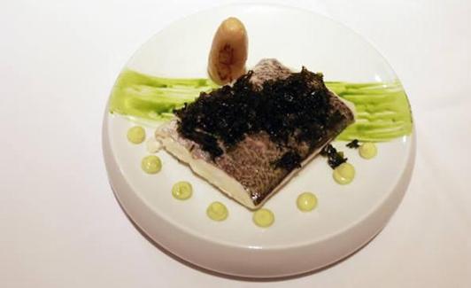 Lomo de merluza a baja temperatura con alga nori crujiente