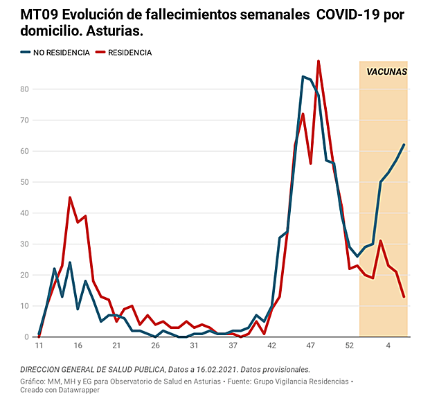 Pero no hay que irse hasta Israel. En Asturias el pasado día 15 de febrero se había sobrepasado la cifra de 2 000 personas fallecidas por covid-19 desde el inicio de la pandemia. Entre ellas, había una gran proporción de personas con domicilio en residencias de mayores, donde el impacto ha sido considerable. Sin embargo, en estos momentos la situación comienza a estar relativamente controlada gracias a los esfuerzos vacunales dirigidos específicamente a las personas residentes y trabajadores que los atienden.