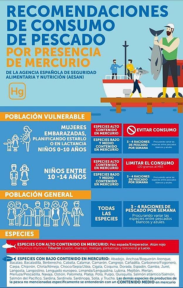 La Agencia Española de Seguridad Alimentaria y Nutrición ha actualizado sus recomendaciones referidas a menores, embarazadas o madres en período de lactancia alertada por la alta presencia de mercurio