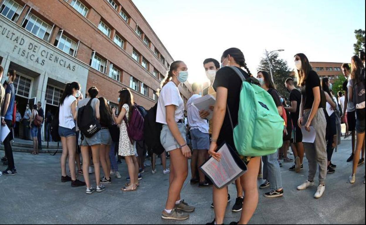 Varios estudiantes antes de realizar el examen de acceso a la Universidad en Madrid este lunes. EFE