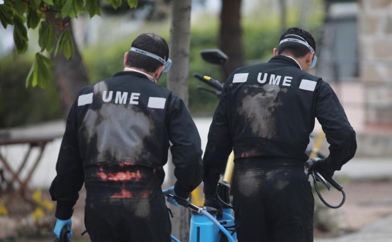Efectivos de la UME se disponen a desinfectar un centro para personas con enfermedades mentales. EP