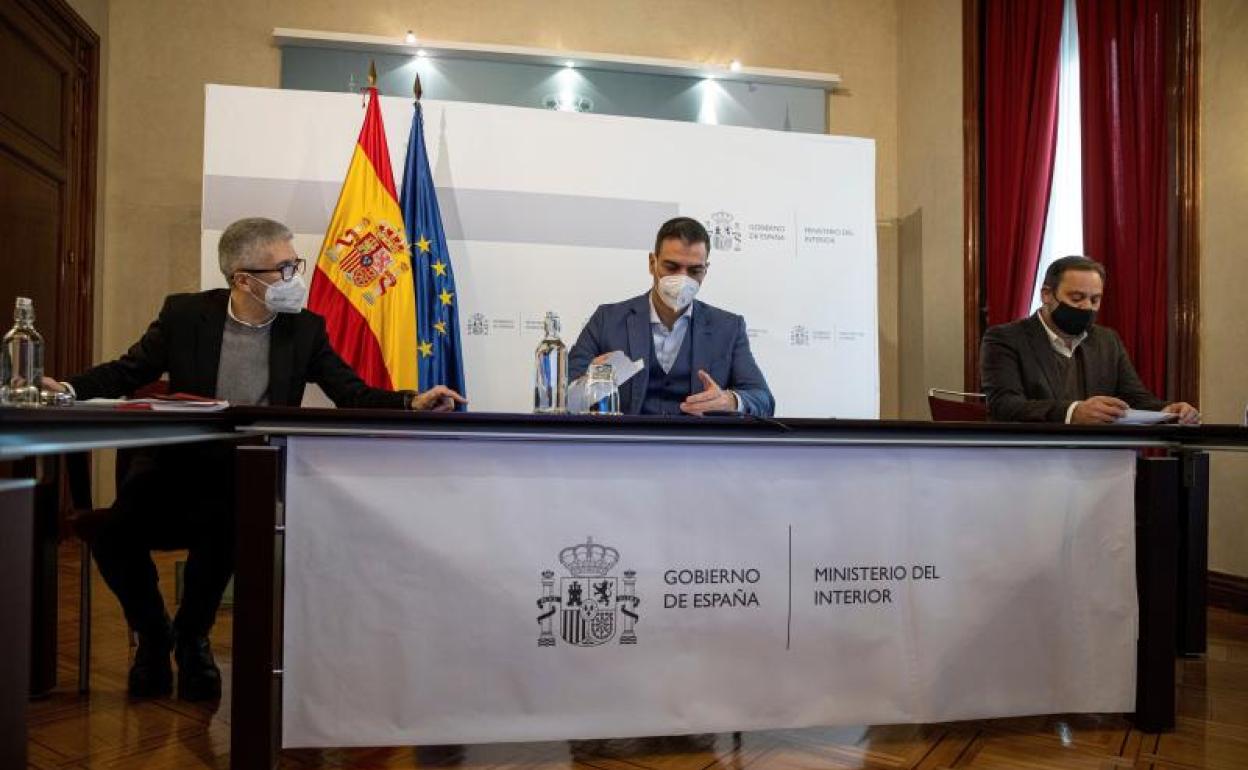 El presidente del Gobierno, Pedro Sánchez ha presidido este domingo la reunión del Comité Estatal de Coordinación y Dirección del Sistema Nacional de Protección Civil. Junto al presidente del Ejecutivo han estado los ministros de Interior, Fernando Grande-Marlaska, y de Transportes, Movilidad y Agenda Urbana, José Luis Ábalos.